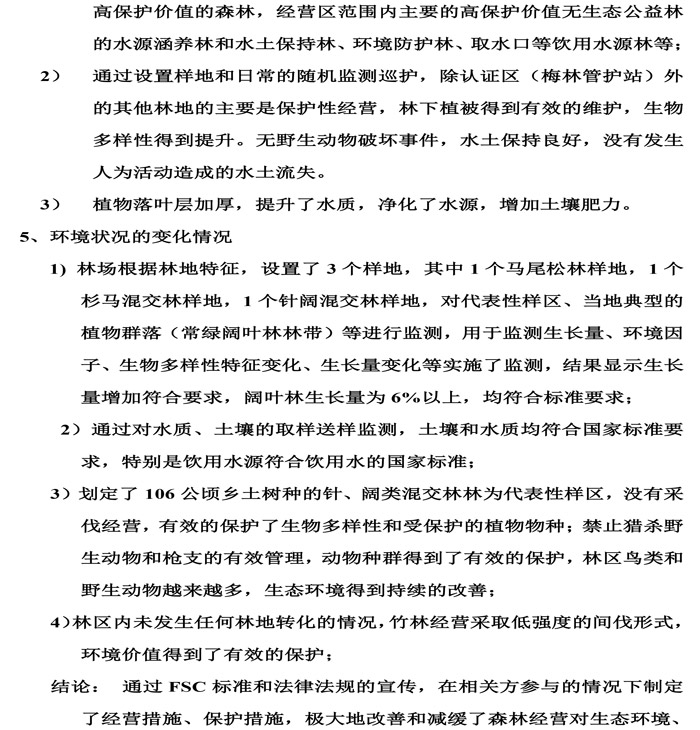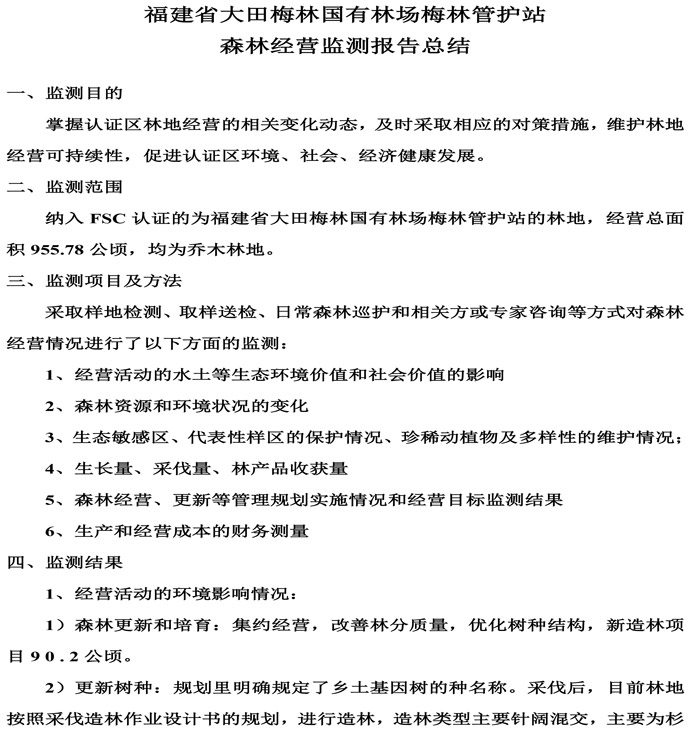 福建省大田梅林国有林场森林可持续经营政策